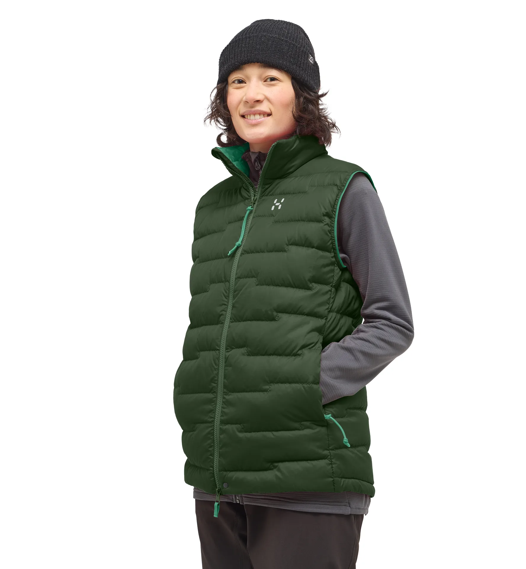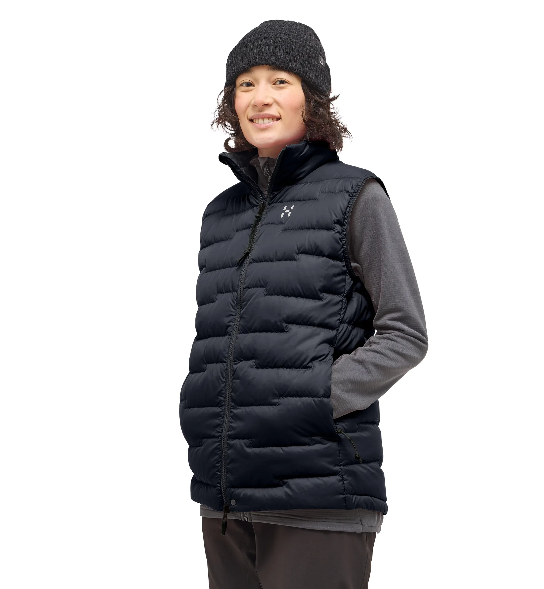A light and warming vest for bold mountain pursuits. Updated with an iconic new look featuring signature offset quilting, it serves as a versatile core-warming piece in sync with the demands of climbing and mountaineering. The lightweight Pertex® Quantum outer fabric shields you from the elements while allowing a comfortable air flow. It’s filled with a strategic combination of H DOWN Gold and synthetic MIMIC sheet insulation placed in areas prone to chafing. The insulation extends to the high, stand-up collar, keeping your neck and chin protected from cold mountain winds.