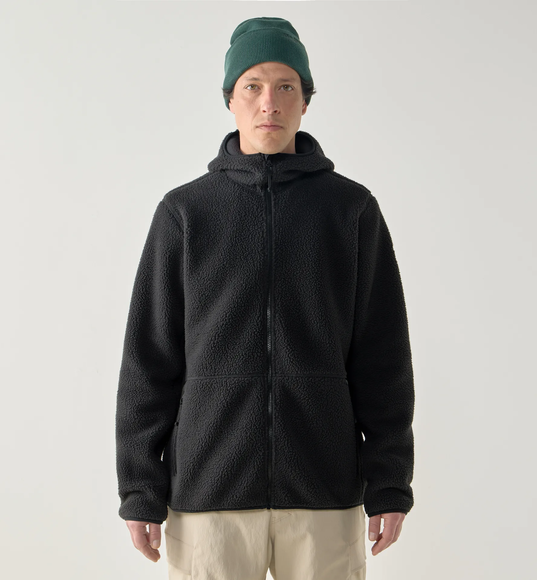 FUNÄS PILE HOOD on mukava hupullinen takki vaellukseen ja jokapäiväiseen käyttöön. Se on valmistettu kierrätetystä polyesterifleecestä, joka hengittää hyvin ja kuivuu nopeasti. Siirretyt laakasaumat lisäävät kestävyyttä ja vähentävät hankausta reppua kannettaessa.