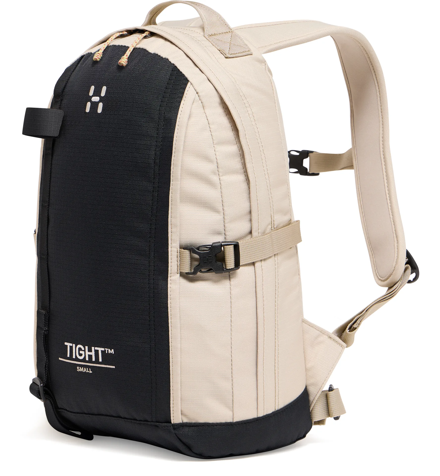 TIGHT SMALL är vår ikoniska ergonomiska ryggsäck för utomhus- och vardagsäventyr. Den är utformad för att ge utmärkt bärkomfort och har en kroppsnära konstruktion med en droppform som ger väskan en lägre tyngdpunkt för balans och stabilitet. Den har även anatomiska axelremmar samt justerbart midjebälte och bröstremmar. Den är tillverkad av ett slitstarkt ripstop-tyg i 100 % återvunnen polyester och är behandlad med PFAS-fri DWR för att avvisa vatten och smuts. Förutom huvudfacket erbjuder den olika fickor och fästpunkter för din utrustning.